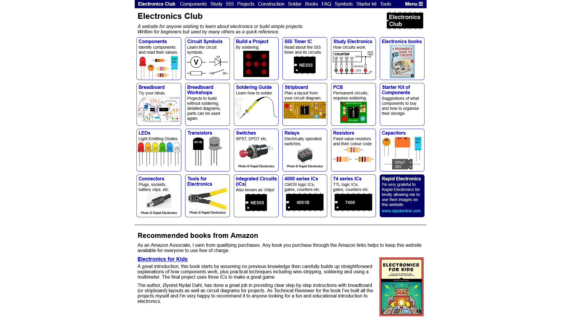 Electronics Club - A website for anyone wishing to learn about electronics or build simple projects.