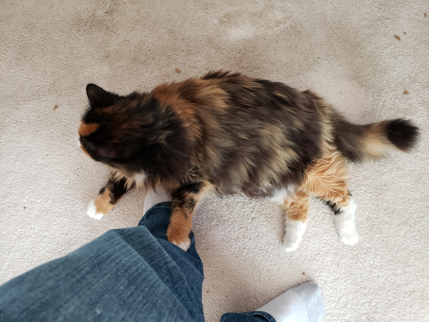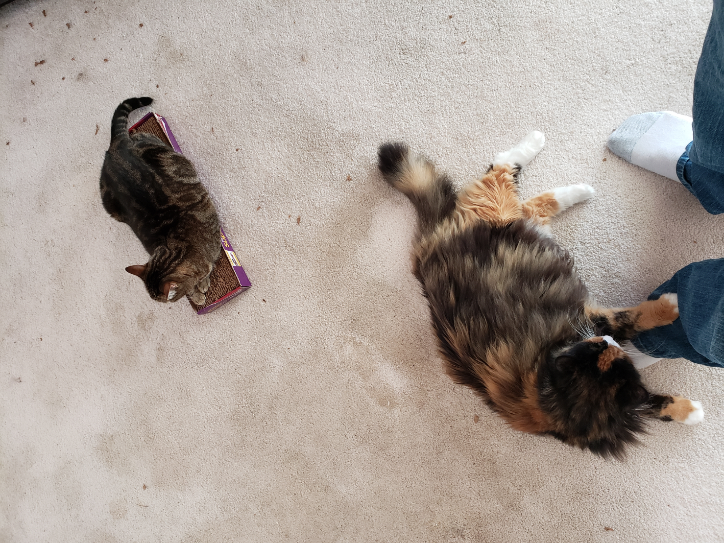 Here they are. The babies. My girls. Two of them anyway. Yes, Thulhu is sitting ON Kami, in my arms. Yes Kami did hiss at first, but just once, and then just put up with it without complaint. Even when Thulhu shifted position.