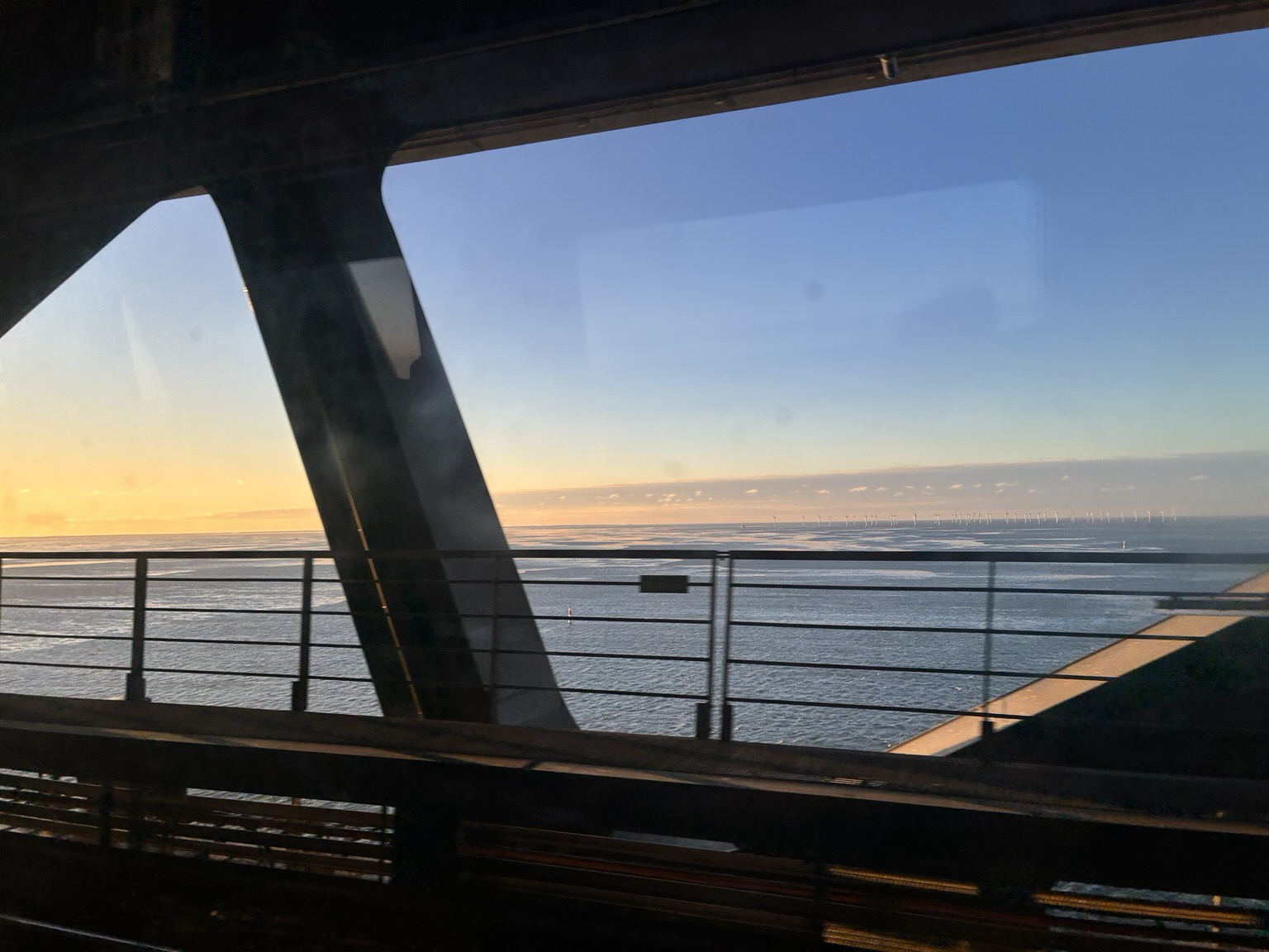 Morning commute over Öresund with @europeanspodcast. Gazing out at the dangerous wind turbines.