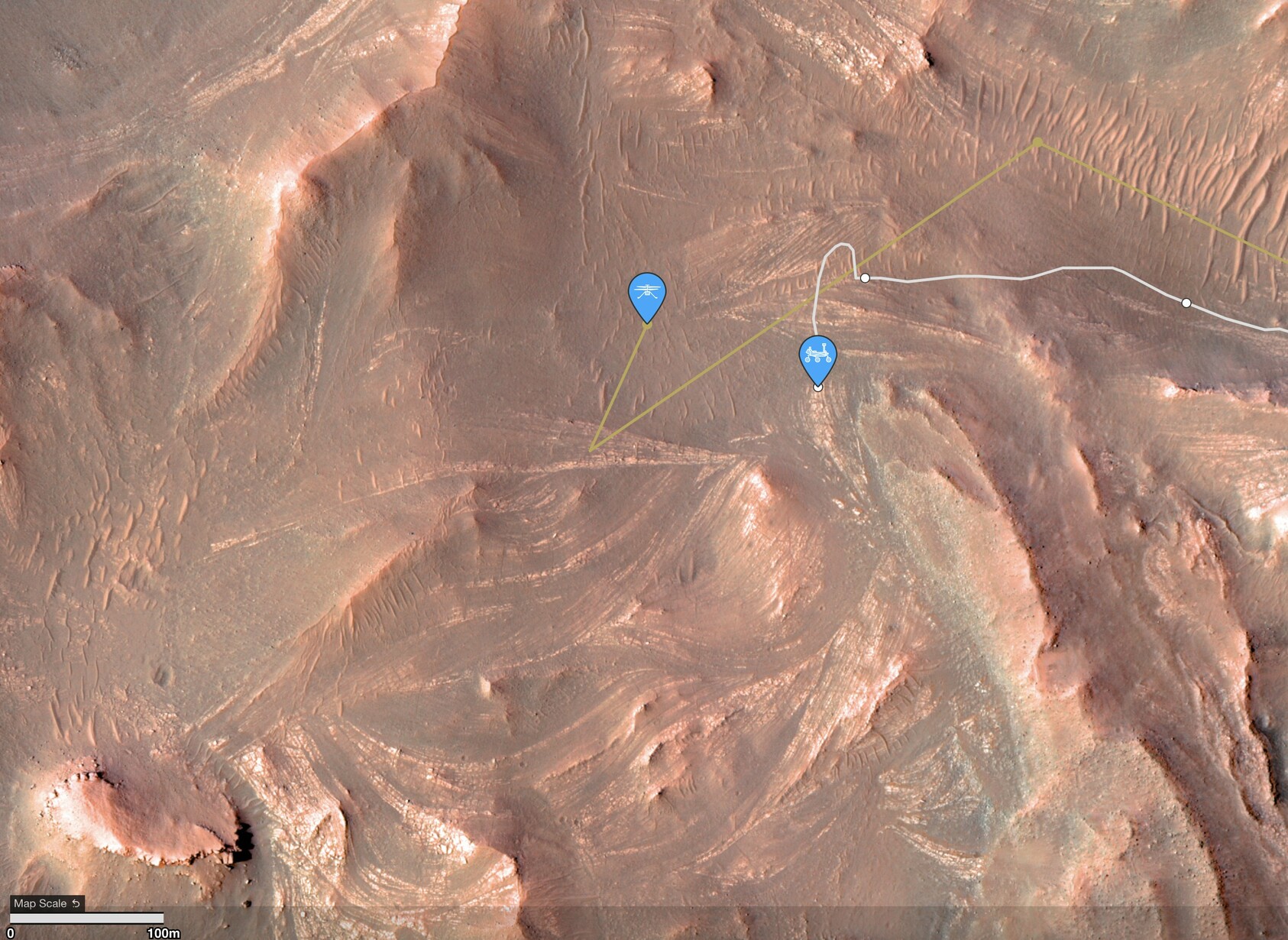 2οΈβ£ #MarsHelicopter flew over the area to scout it out.