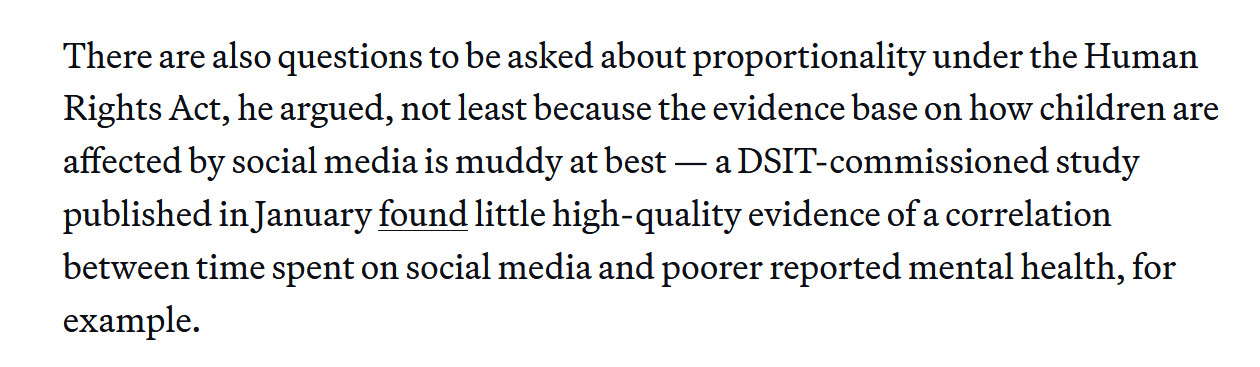 and the supposed pressing need for these powers, the urgency which justifies government giving itself the ability to sidestep democratic process at a stroke, this social media-driven youth mental health crisis which requires immediate action. well it doesn't exist. it's a confected moral panic